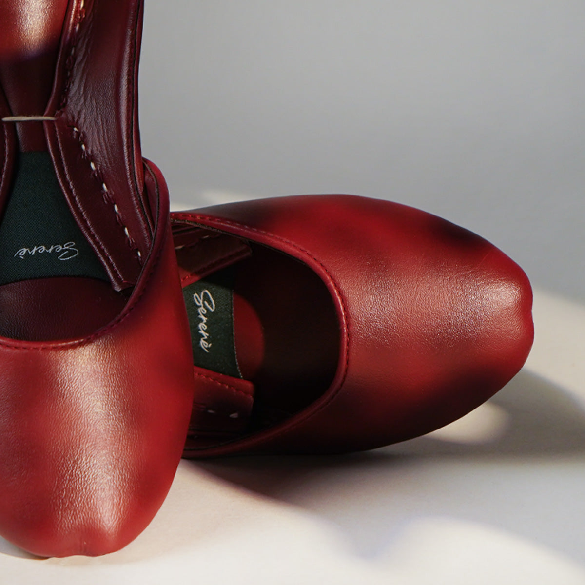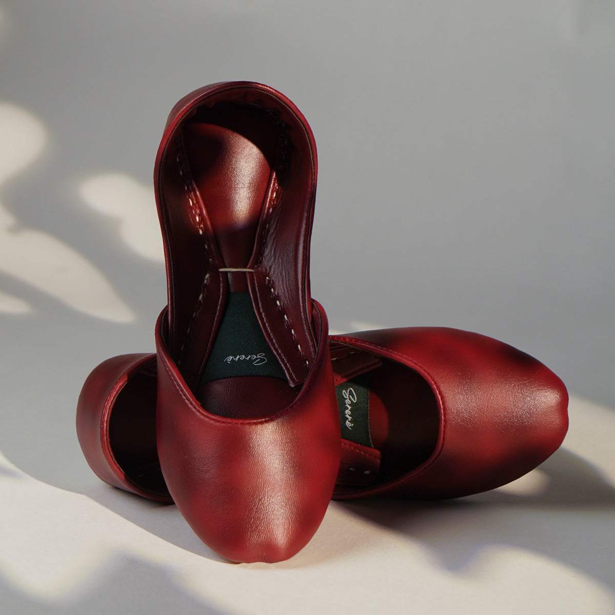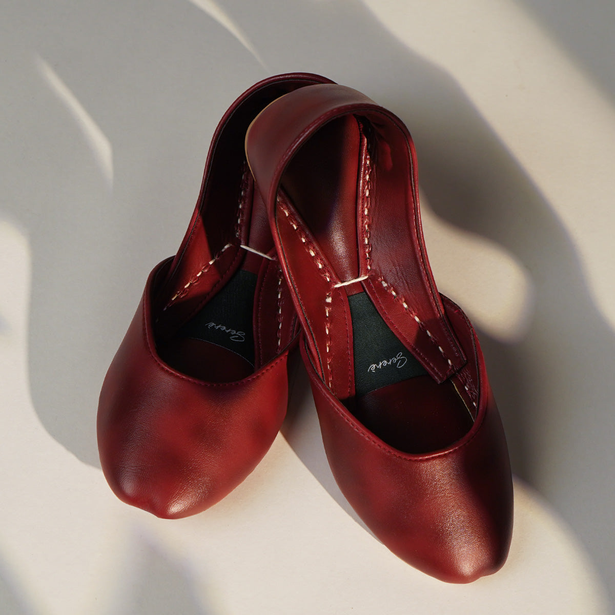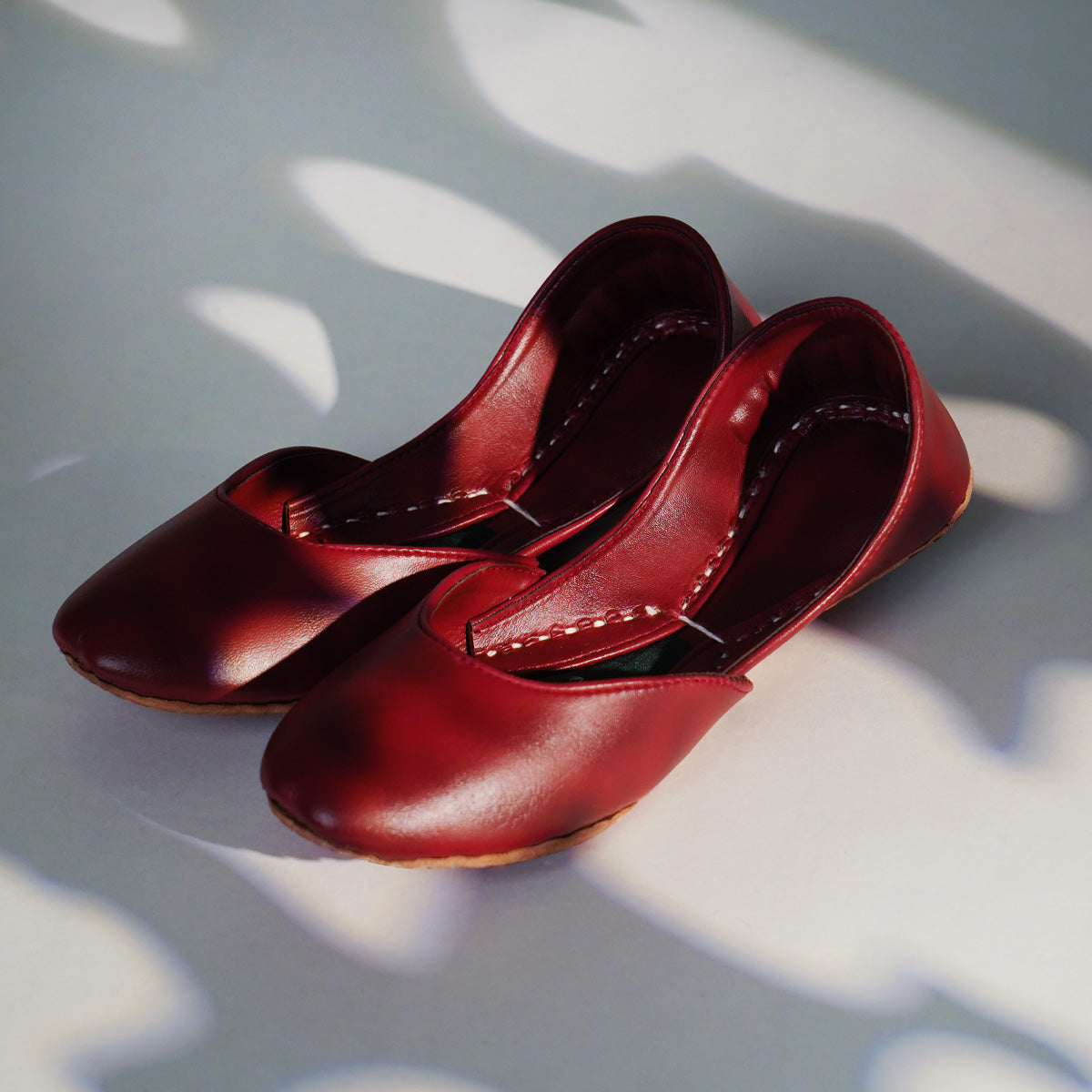 ''Ember'' comes in a stunning solid maroon shade for a rich, warm touch. Handcrafted from durable faux leather, it features a cushioned sole for extra comfort, making it the ideal choice for both your casual outings and busy workdays. You can pair it with traditional shalwar kameez and jeans both.