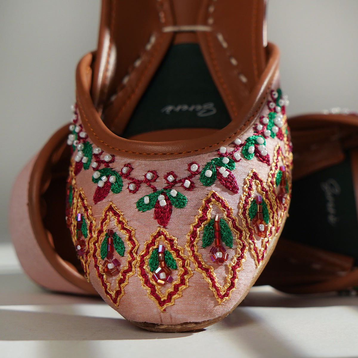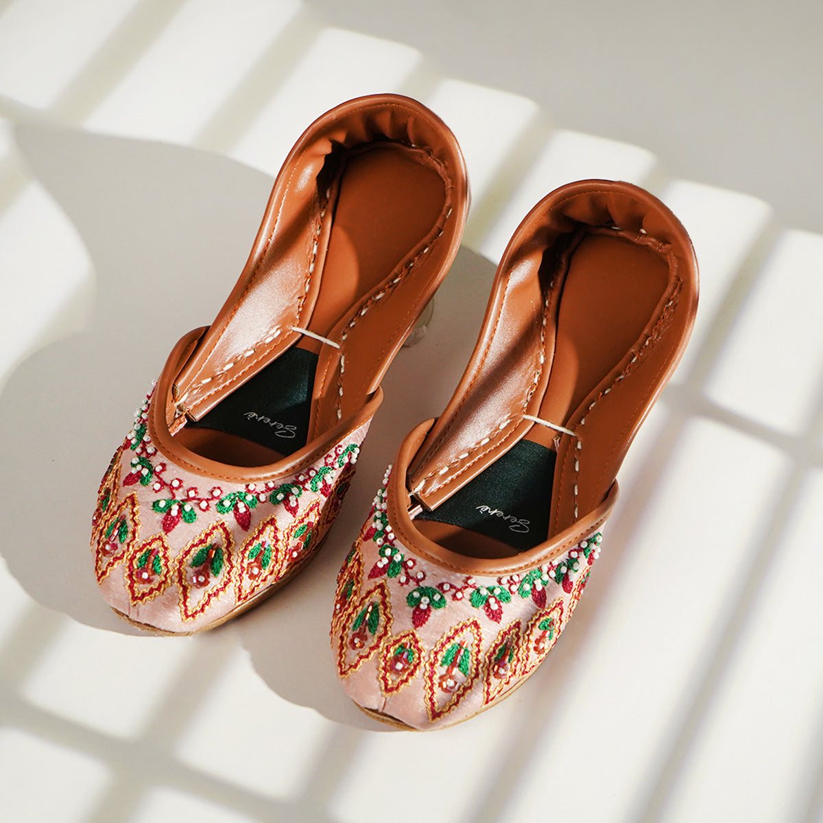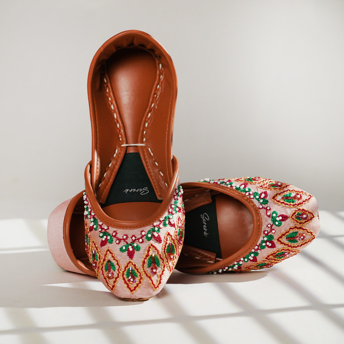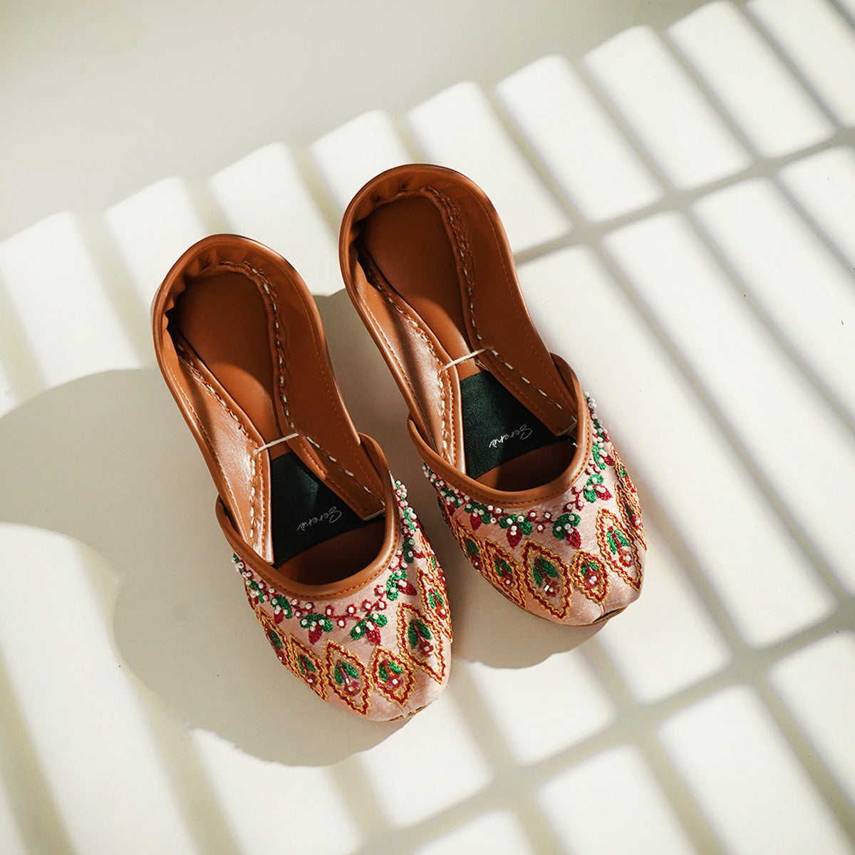 This elegant Khussa is perfect for evening wear ensembles, featuring a sophisticated pattern embroidered with a variety of rich, different color threads. Designed to perfectly complement shalwar suits, it offers a luxurious soft sole and comfortable lining, ensuring ultimate style and ease throughout your event.