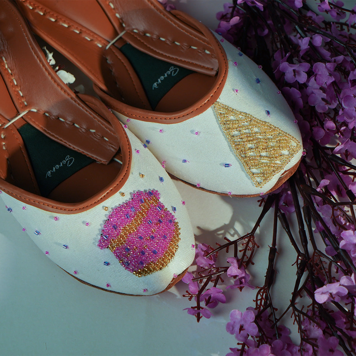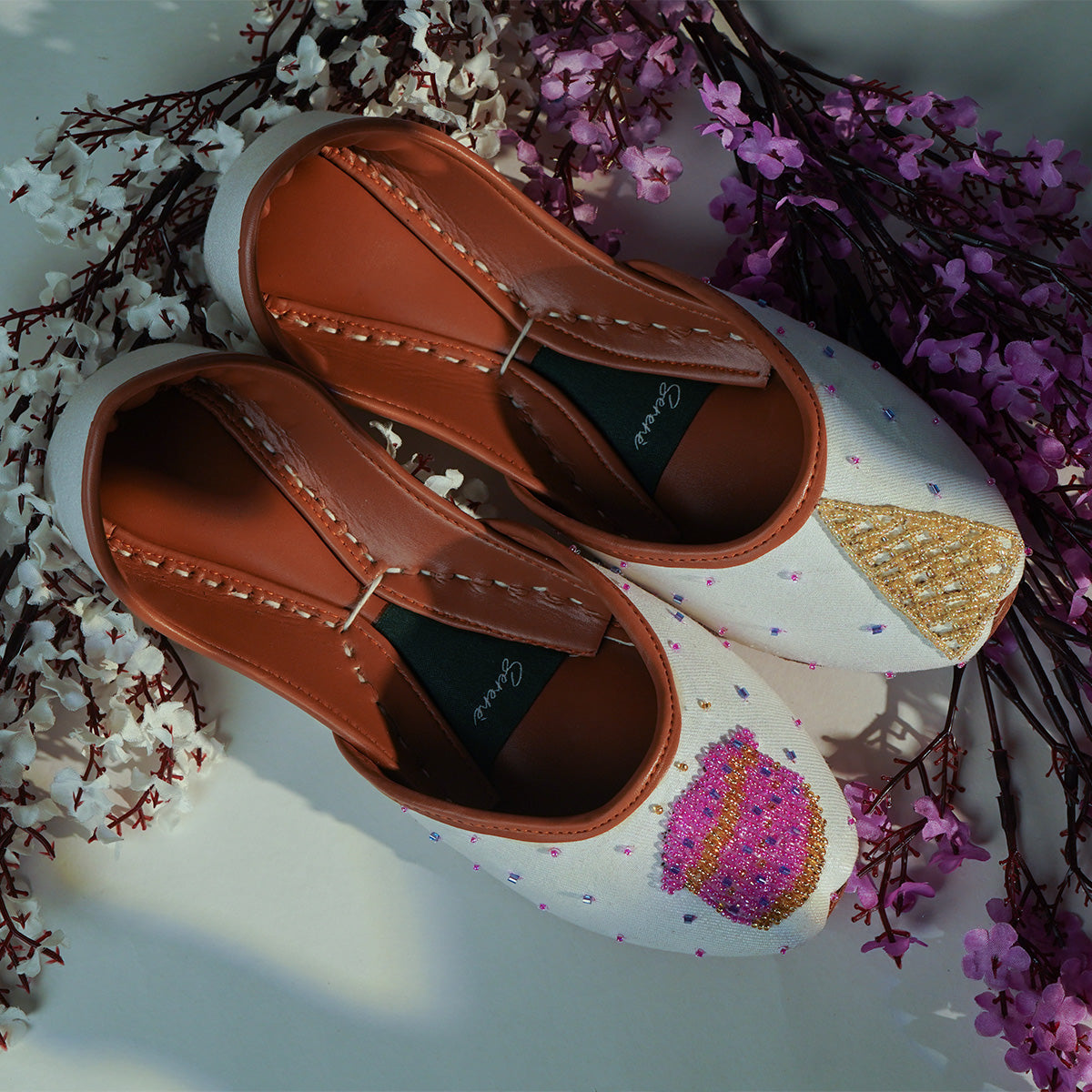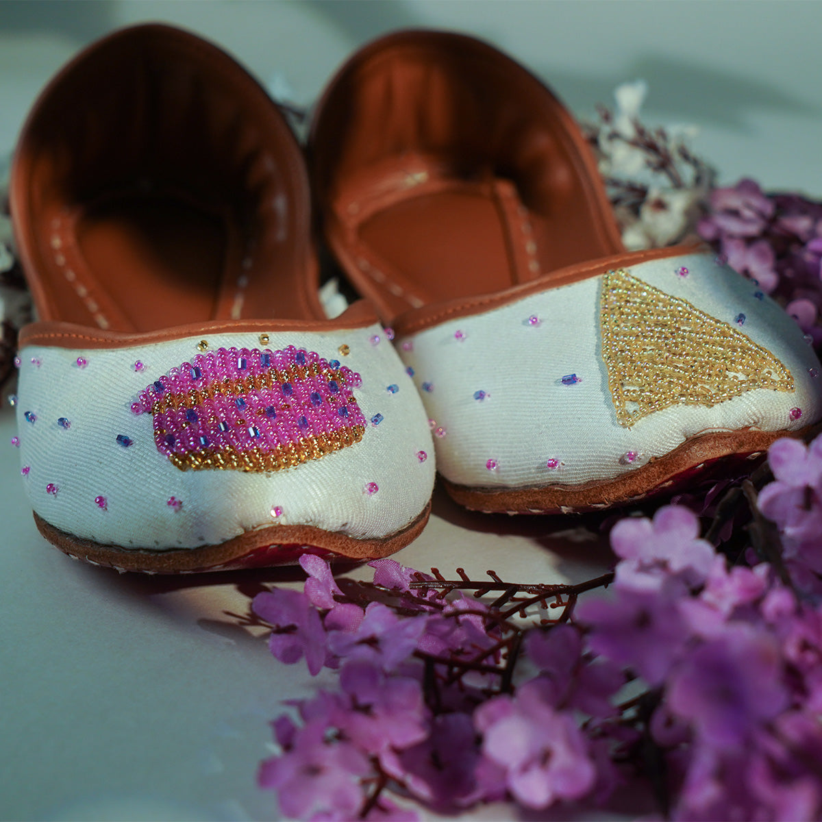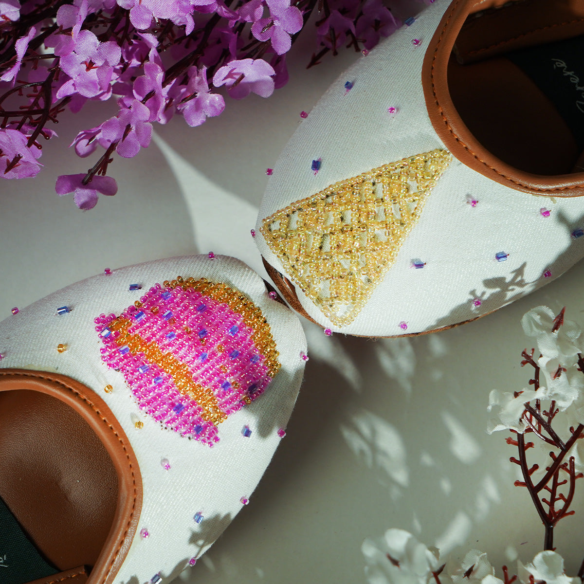 A unique ice cream-inspired pattern making each pair a little different and fun. Embellished with tiny pearls and colorful detailing, it adds a quirky yet chic touch to your casual looks. The soft sole keeps it comfortable for everyday wear, while the distinctive design makes it stand out effortlessly.
