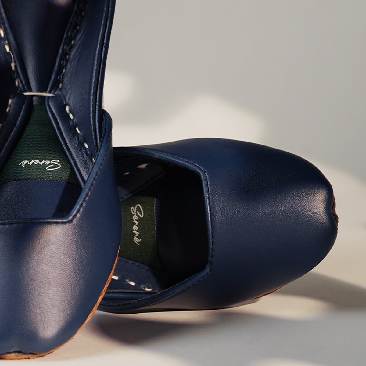 The “Sapphire” khussa is a rich ink blue shade that adds a touch of sophistication to any look. Handcrafted from durable faux leather, it features a cushioned sole for exceptional comfort, making it the perfect choice for all-day wear. This simple and timeless design pairs effortlessly with everything from casual jeans to a traditional ensemble, making it a staple for any occasion.